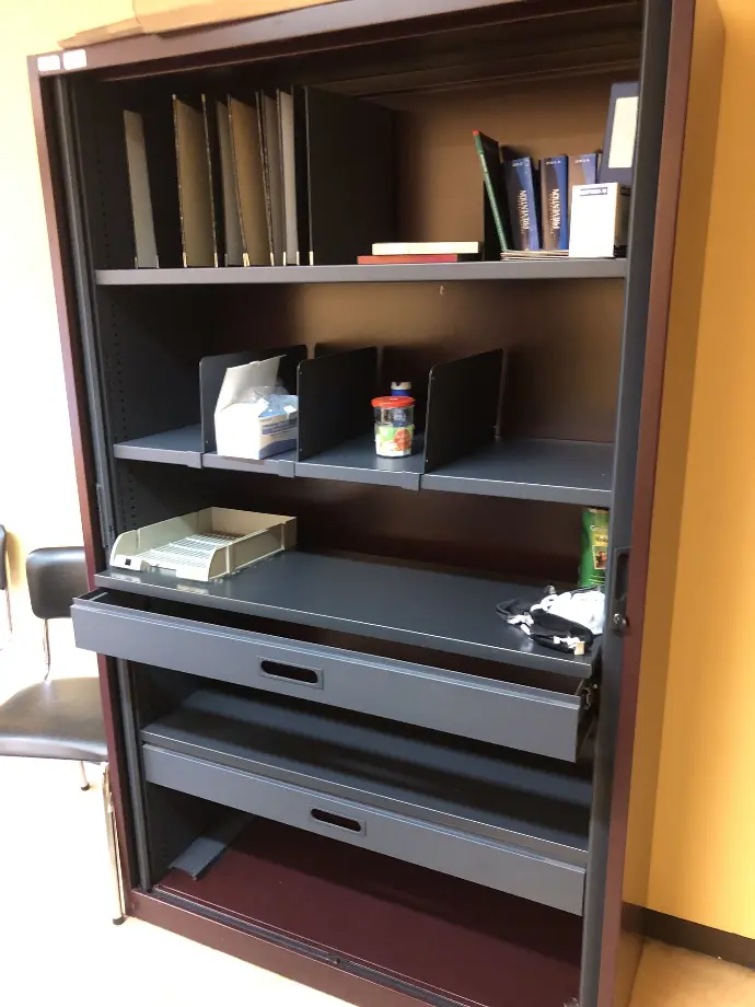 - de plusieurs centaines de meubles divers dont bureaux, armoires hautes, armoires de classement, tables, dessertes, caissons mobiles et chaises de bureau (voir listing et photos en annexe)